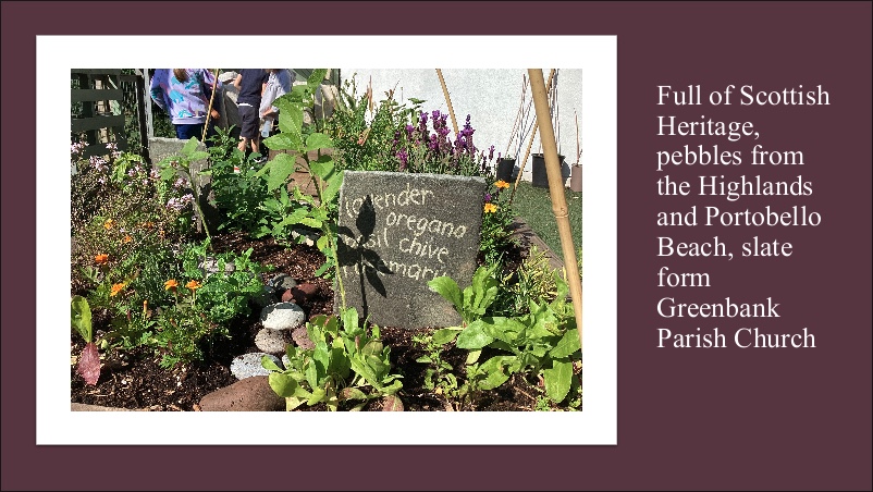 We entered the POCKET PICNIC GARDEN competition this year. The garden had to have a local heritage theme. We grew healing plants from seed and we used pebbles gathered on Portobello beach and in the Highlands. We used slate from Greenbank Parish Church. Our garden was voted a winner and is currently being showcased in the ECO SCHOOLS SCOTLAND website. We have maintained our ECO GREEN FLAG status for over 10 years now and this year we were appraised by the Council and the Scottish Government for our ECO achievements.